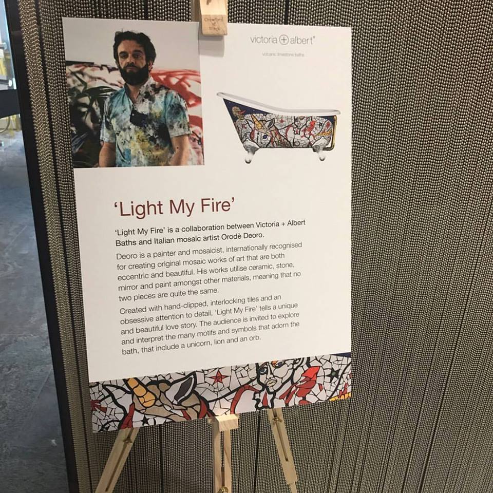 “Light my fire”. Vasca da bagno del marchio Victoria+Albert che ho trasformato in un’opera unica è in esposizione a Londra, nello showroom V+A, presso il Design Centre Chelsea Harbour