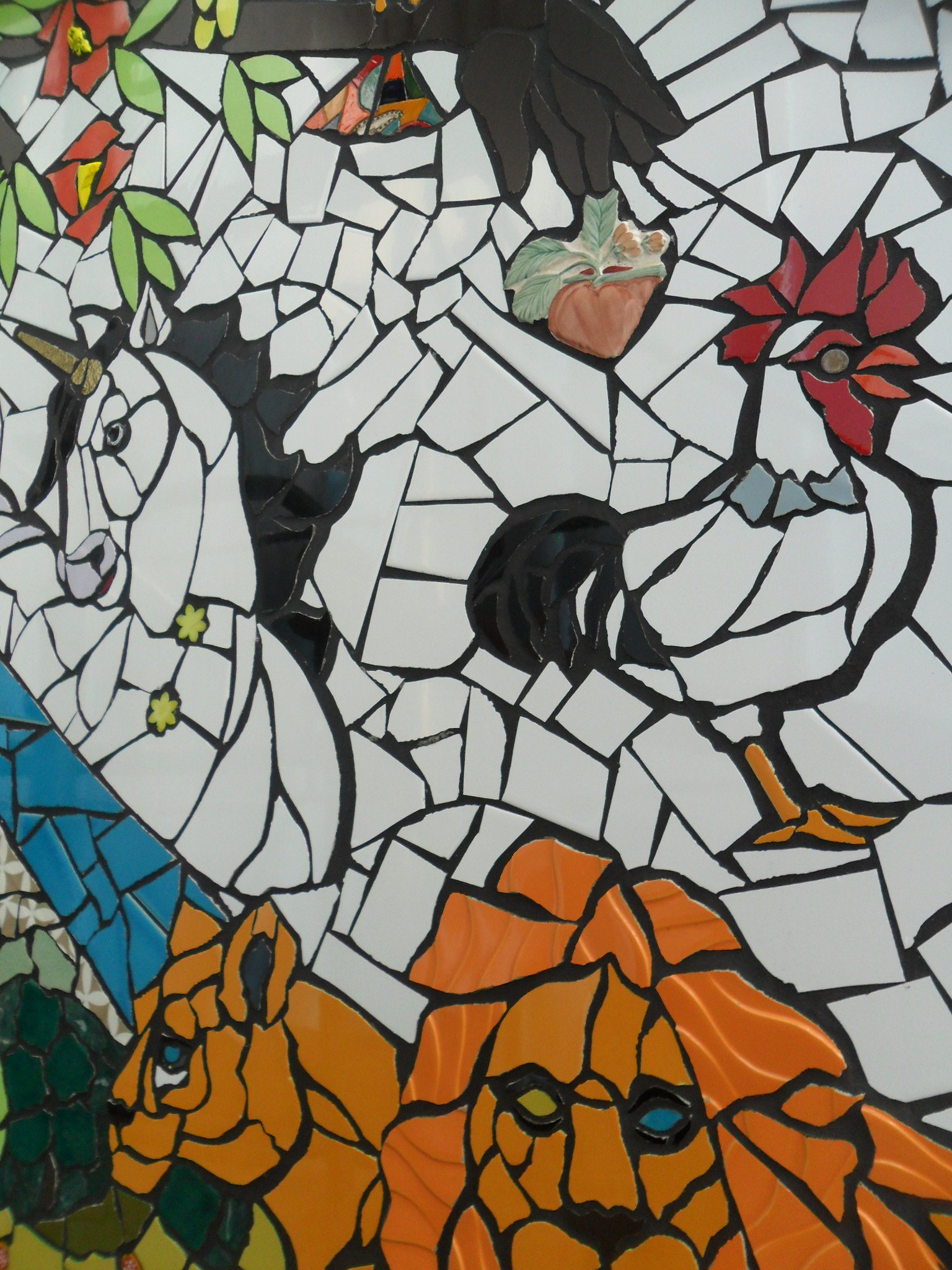 Ecco qui altri particolari del grande mosaico de “Il paradiso terrestre”, su un muro esterno della casa studio milanese dell’architetto e designer Fabio Novembre…